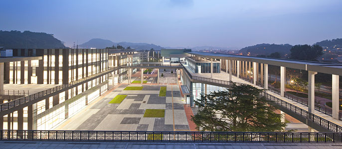 누리고 승하는 행위를 위한 최소한의 건축적 접근 방식은 너른 마당을 만드는 것이다. 너른 마당을 만들기 위해 큰 틀을 만들고 그 틀 속에는 여러 성격을 갖는 작은 마당들이 조각보처럼 얽혀 큰 마당을 형성하게 하였다. 연속된 조각보 마당은 각 기능들을 적절하게 분산 배치하면서 마당을 중심으로 강한 응집력을 갖도록 한다. 조각보 마당은 강한 틀에 의하여 ‘생성(生成)의 장(場)’으로 변화한다. 이처럼 틀의 내부는 무형문화를 누리는 장이 되며, 외부는 기존부지의 기억들을 고스란히 담은 너른 수목원이 되어 대중에게 열린 도심공원이 된다.