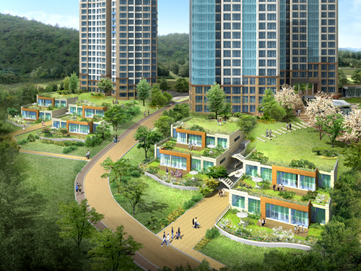 여계산과 석산의 푸른 녹지로 둘러싸인 오산세교 2공구는 자연과 도시, 사람이 함께 어울려 하나가 되는 고품격 주거단지를 컨셉으로 한 프로젝트입니다.단지 배치에서는 북쪽 여계산으로 이어지는 통경축의 확보와 더불어 주변 근린공원의 녹지를 유입하는 데 주안점을 두었으며, 동서로 바람길을 조성하여 동측 인접단지까지 고려했습니다.20m 도로에 인접한 주동의 층수는 15층으로 계획하여 변화감 있는 가로변을 조성하고, 경사지를 활용한 입체적인 동선 계획으로 더욱 안전하고, 편리한 동선이 되도록 했습니다. 테라스하우스는 단지 전면으로만 배치하여 석산의 전경을 한눈에 들어오도록 한 것이 특징입니다.생활가로변에 집약시킨 커뮤니티시설은 주민들의 편리한 이용과 접근을 고려한 것이며, 시원스레 열린 주출입구와 게이트는 단지의 인지성을 증대시키도록 했습니다. 동시에 프라이버시를 보호하는 계획으로 고품격 이미지를 한층 더 증대시켰습니다.