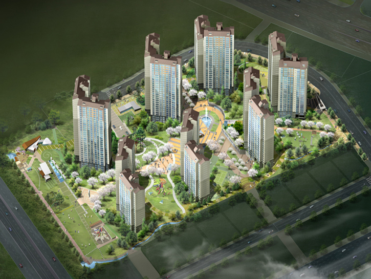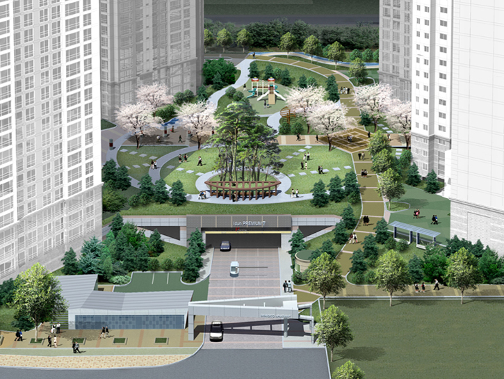 자연을 닮은 주거단지로서 친환경인증 최우수등급계획을 수립한 당선작입니다. 인근 광교산을 고려한 통경축과 바람길을 고려하고 공공조경에 테마를 부여하여 적극적인 외부 공간 및 단지 배치계획을 세웠습니다. 지형을 고려한 데크 시스템을 도입하여 차 없는 지상 환경을 조성하는 한편, 보육시설 접근을 고려한 별도의 차량동선을 마련했으며, 주변 컨텍스트에 맞춰 자연경관대응형, 초고속경관형, 도시가로 대응형 주동이 펼쳐지는 가운데, 진입광장부터 프리즘광장(중앙광장)과 연계되어 이어지는 생활가로를 따라 입체적 구성의 커뮤니티가 형성되고 운영될 수 있도록 했습니다.