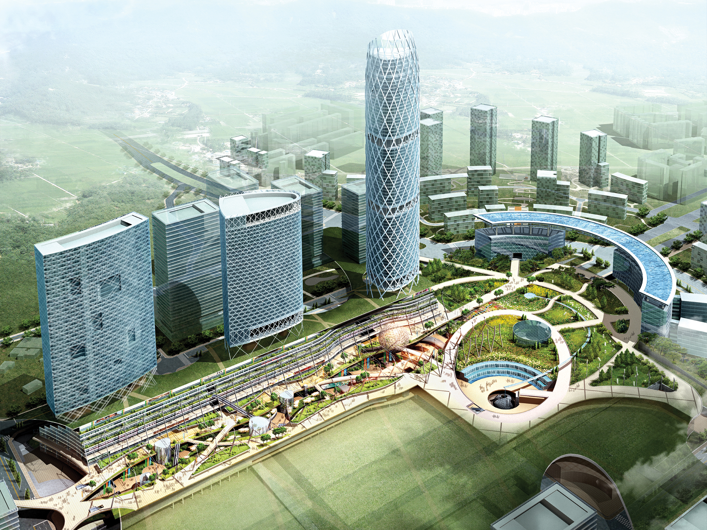 서울과 인천국제공항을 연결하는 교통의 대동맥 상에 위치하는 인천시 가정지구의 입지적 여건을 활용하여, 국제 중심‘인천’과 국내 중심‘서울’에 접하면서 1000년 이상 지속가능한 차세대형 환경융합도시를 지향한다는 의미에서 ‘Asian Edge City’개념을 제안한 프로젝트입니다. ‘정적 공간과 동적공간의 조화’를 추구하는 마스터플랜 및 ‘지하부의 지상화’를 꾀하는 입체도시계획시설의 컨셉에 의거하여, 지하층과 기단부는 동적 공간으로 통합하고 타워부는 정적 공간으로 분류시킨 한편, 지하 1층을 제2의 지상층으로 구상하여 시각적 개방감의 극대화를 추구한 것이 특징입니다. 특히, 기단부의 루프‘roof’에는 녹지화 및 채광 및 환기가 가능한 전천후 시스템을 제안함으로써 ‘빛, 녹, 수의 네트워크’라는 3가지 공간 테마를 구현하고자 했습니다. 지하시설 중앙에 계획한 원형의 상징 구조물은 도시를 지켜주는 지역의 심벌로서 트러스 프레임에 의해 상공에 떠 있게 되며, 상부 유리의 계폐를 통해 빛과 바람의 유입이 가능합니다.