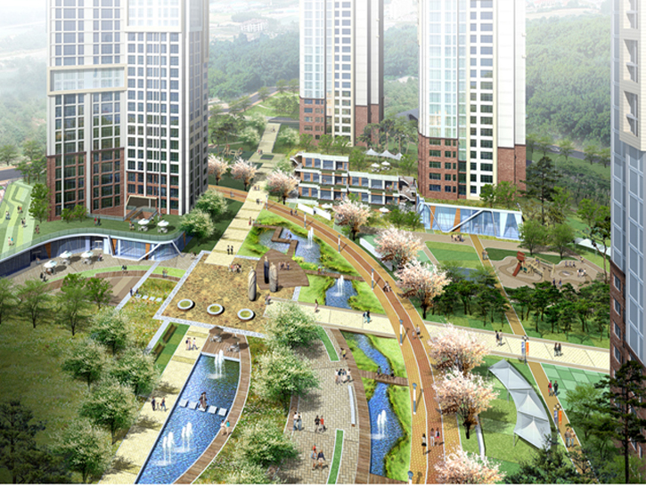 URBAN, COMMUNITY, NATURE를 콘셉트로 정다운 이웃과 살아 쉼쉬는 문화를 향유하는 마을로 설계하였다.기존 도심의 가로축에 순응하여 도시의 흐름을 유지하고 주거 환경개선사업의 취지에 맞게 주변시설 및 2개의 단지의 연계성을 고려하였다. 뿐만 아니라 생활가로 주변에 부대 복리시설을 배치하여 생활가로가 활성화될 수 있게 계획하였다. 중앙에는 배다리광장을 구성하여 송현 근린공원의 녹지를 유입하였으며 주 보행통로와 연계된 친수공간을 계획하고, 송현 근린공원으로 열린 통경 축을 형성하였다.구릉지형의 특성을 살린 테라스하우스, 테크 주차장을 계획하였고 , 주변 주공아파트와 연계된 자연스러운 스카이라인을 계획하였다.