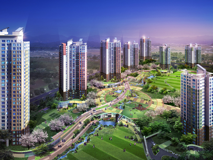 e-fluxia는 김포 본래의 풍요로움과 캐널시티가 가지는 수로도시, 생태환경 전원도시의 성격을 유입하여 자연,물, 이웃의 이야기가 흘러 하나되는 마을을 계획했다.첫째, 숲의 풍경이 단지 안으로 흘러 자연과 하나되는 숲속마을(Nature)둘째, 물과 하나되는 풍경마을(Canal)셋째, 이웃과 하나되는 화합의 마을(Human) α, 자연이 에너지가 되는 세상으로 저에너지 친환경단지를 실현시켰다.