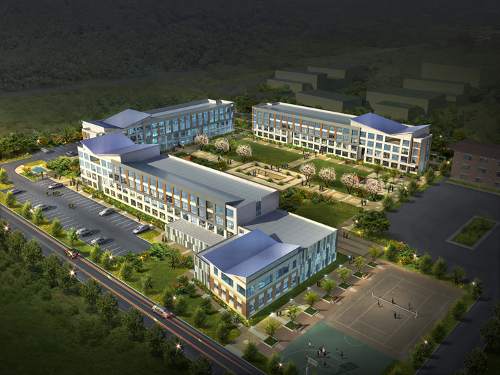 상록수 : 모진 비바람과 눈보라를 견뎌내며 돌 위에 자라 천년을 지키는 불로송과 같이한껏 푸르른 젊음을 불태워충성하고 애국하는 ‘상록수’가 된다. 고양시와 양주시의 상징목 상록수“바르고 용감한 젊음”을 상징하는 상록수는 젊은 육군들의 기상이 녹아있는 곳이라는 의미를 담고 있습니다. Community, Human, New, Mentality, Green의 5가지 개념으로 정예화된 선진강군 육성에 앞장서며, 국방선진화를 실현하는 新 병영 및 주거공간을 제안하였습니다.