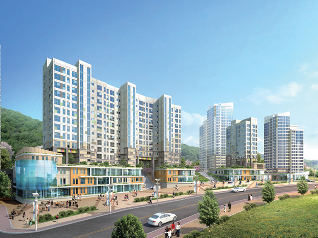 이러한 제반여건을 종합하여, 구릉지에 옹기종기 모여앉은 한국형 주거공간, ‘둘레마을’을 테마로‘질서를 담아내는 안팎길’, ‘전통경관을 닮은 일보일경’, ‘지형에 순응하는루’,이 세가지의 옛마을 요소를 단지 전체에 적용하여 디자인했습니다.