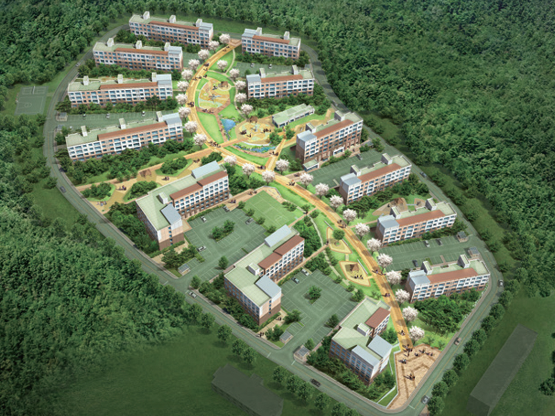 관사시설은 지상에 차량통행이 없는 안전한 보행로를 계획하고, 주변의 푸른 녹음을 단지 안으로 유입해 중앙의 보행통로에서는 자연과 문화의 향연이 펼쳐지도록 하고 간부숙소는 푸른 숲과 넓은 커뮤니티 마당에서 전우애를 나누는 공간을 제공토록 했습니다.