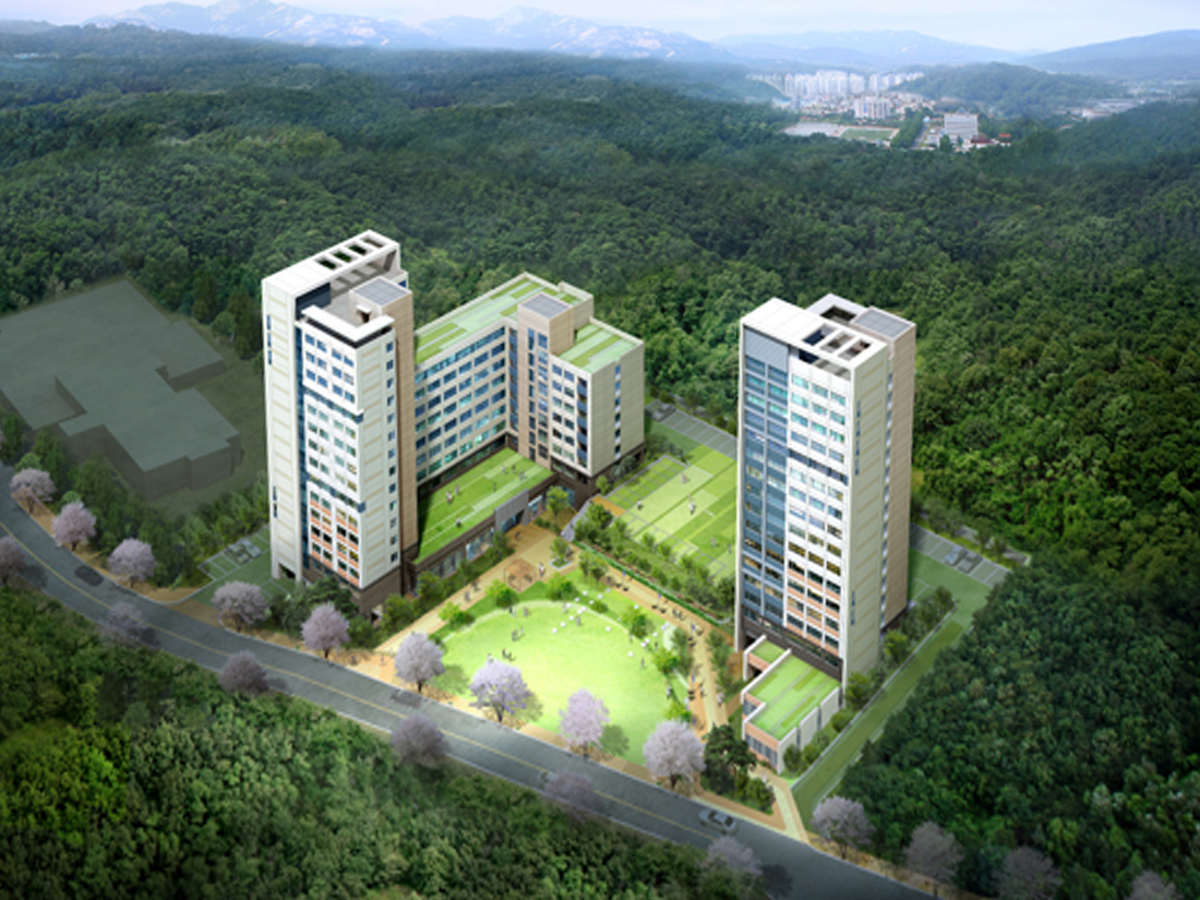 군산대학교 : 자연이 숨쉬며 바람을 품은 생활관 “푸른가온” 군산의 새 랜드마크로 자리 잡을 군산대학교의 생활관은 자연지형에 순응하는 외부공간을 조성하여 자연을 품에 안고자 하였습니다. 기존 기숙사 시설들과 연계된 커뮤니티 네트워크로 자연과 어우러진 생동감 있는 커뮤니티를 조성하였습니다.