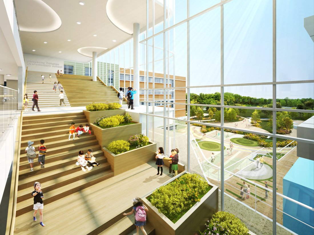 마지막으로 시설 집약화를 통한 편의성 극대화 및 외부공간을 최대로 확보하여 쾌적한 교내 자연환경을 조성한다. 이를 통해, 화성동탄 지구내 새롭게 형성되는 도심형 친수공간에 자연을 최대한 보존하고 도시와 자연이 조화를 이루는 학교가 세워질 것이다.