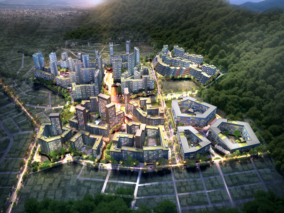 기존 관습로 내 결절점에 부대시설을 배치하고 마을곳곳의 점적인 구성요소로 불규칙적인 분산형 부대시설을 배치하였다. 각 마을에 안뜰마당과 공유 커뮤니티공간을 계획하고, 주변과 어우러진 스카이라인을 통해 마을별로 다양한 풍경을 제공한다.