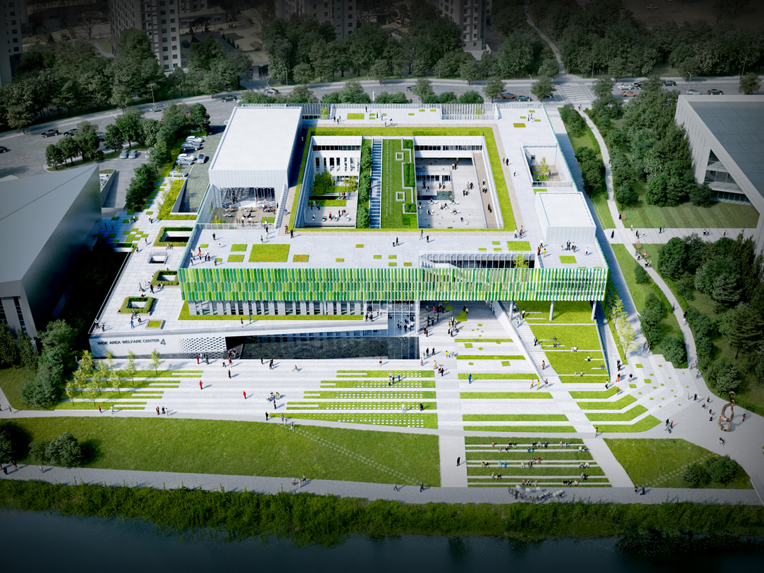 이에 우리는 도시와 수변 자연의 흐름이 건축 외부는 물론 내부로도 이어지는 공간을 만들어, 장애인/비장애인이 자연스럽게 어울리고 소통하며, 마음의 거리를 좁힐 수 있는 편하고 안전한 장소인 ‘어울림’을 제안한다.