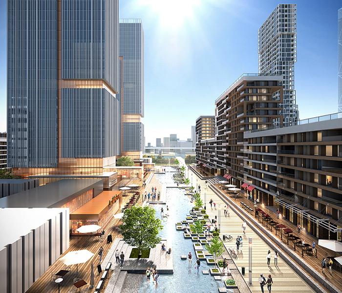 We secured 1.5 times more specialized communities than usual, various facilities, 1.8 underground parking lots per household, reduced parking costs by using decks, street-style shopping area and the waterside square and so on. In planning unit households, we designed 3-sided open space style and a large terrace space with the largest service area by using our knowhow, which has designed large complexes with 6,000 or more households, to ensure business feasibility as best as possible.