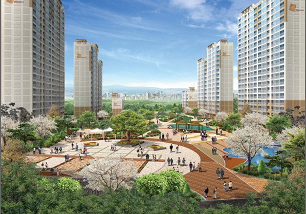 동탄 신도시의 2단계 지역으로 저밀도와 중밀도가 혼재되어 있는 임대단지이다. 인접 단지와의 대칭형 스카이라인으로 주동을 배치하고, 외곽에서 중심을 향한 통경축과 대로변에 대한 조망, 지상 주차 없는 조경 계획과 북고남저의 지형을 이용한 주차장 계획, 데크형 부대시설 계획 등으로 향과 조망의 조화를 추구했다.