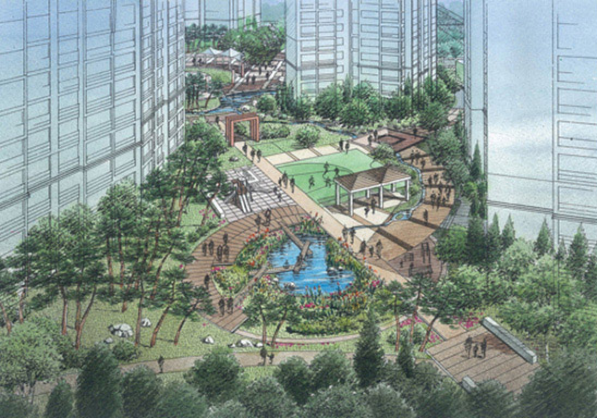 탑상형과 절곡형을 적절하게 배치하여 한강 및 검단산 등 주변 경관의 조망과 통경축을 확보하였다. 또한 B-5 블럭은 수공간 활용 단지로, C-1 블럭은 태양 에너지 활용단지로 계획하여 환경도시라는 이름에 걸맞는 생태주거단지를 조성하였다.