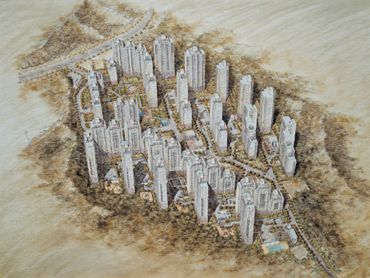 테크를 이용한 주동과 탑상형 주동을 배치하여 주변 경관과 어울리고 자연 지형에 순응하면서도 변화감이 느껴지는 스카이라인을 만들었다. 주동의 특징적인 입면은 옥상에는 주민 휴게공간과 정원을 설치하여 주민들의 커뮤니티 향상을 도모하였고, 테크 하부는 자연 환기와 채광이 유리하도록 계획하였다. 개방감 있는 엘리베이터 홀을 계획하여 폐쇄감을 극복하며 각 세대의 프라이버시가 보장되도록 하였다.
