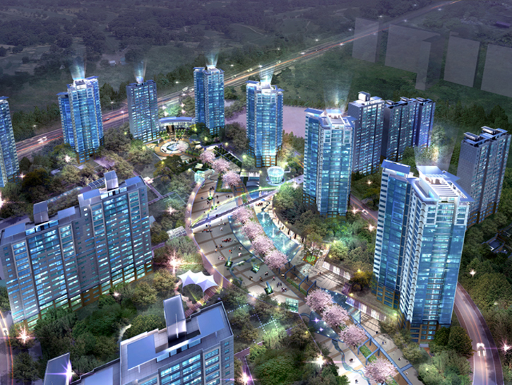‘자연에 의해 창조된 주거단지’라는 테마로바람의 흐름이 만들어낸 판상형의 주동,푸른 숲의 조망이 만들어낸 랜드마크 타워동,땅의 흐름이 만들어낸 테라스하우스가 조화를 이루는생태주거단지로 계획하였습니다.