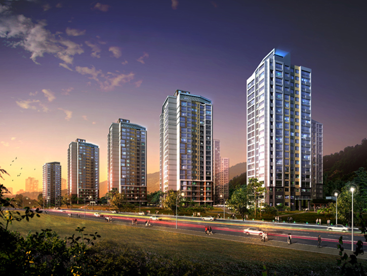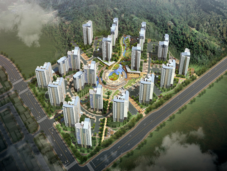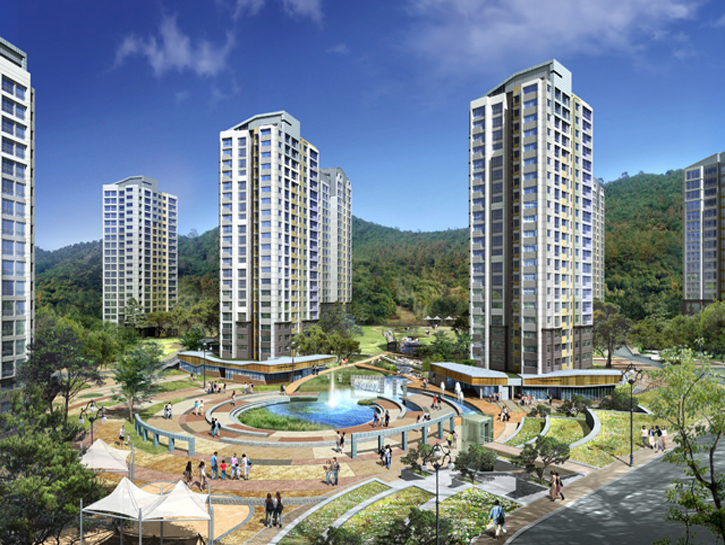 무선근린공원과 죽림저수지의 풍부한 자연환경과 교감하며, 죽림지구의 관문으로서 경관 및 커뮤니티의 중심이 되는 상징적 단지를 계획하였습니다. 경사지의 특성을 고려한 자연스러운 레벨계획과 무선산 근린공원의 녹지를 단지내로 유입하는 등 자연친화적 주거단지를 구성하였습니다. 또한 단지 내로 유입된 자연과 중앙광장을 연계하여 에코-비스타(Eco-VISTA)를 구현하고, 중앙광장에 부대시설을 배치하여 커뮤니티의 활성화를 도모하였습니다. 도시 가로변의 경관타워는 중심지에서의 진입경관을 고려하여 랜드마크가 될 수 있도록 옥탑부 조명을 통한 라이팅박스를 설치하여 단지 인지성 및 리듬감을 부여하였습니다. 중앙광장변은 3면 개방형의 조망형 타워를 배치하고, 근린공원과 연계된 녹지와 수공간이 어우러지도록 디자인되었습니다.