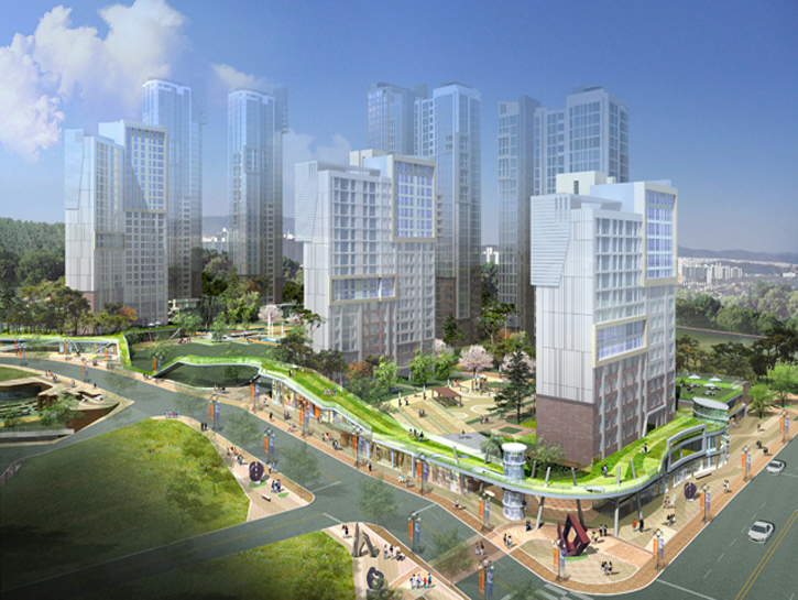 URBAN, COMMUNITY, NATURE를 콘셉트로 정다운 이웃과 살아 쉼쉬는 문화를 향유하는 마을로 설계하였다.기존 도심의 가로축에 순응하여 도시의 흐름을 유지하고 주거 환경개선사업의 취지에 맞게 주변시설 및 2개의 단지의 연계성을 고려하였다. 뿐만 아니라 생활가로 주변에 부대 복리시설을 배치하여 생활가로가 활성화될 수 있게 계획하였다. 중앙에는 배다리광장을 구성하여 송현 근린공원의 녹지를 유입하였으며 주 보행통로와 연계된 친수공간을 계획하고, 송현 근린공원으로 열린 통경 축을 형성하였다.구릉지형의 특성을 살린 테라스하우스, 테크 주차장을 계획하였고 , 주변 주공아파트와 연계된 자연스러운 스카이라인을 계획하였다.