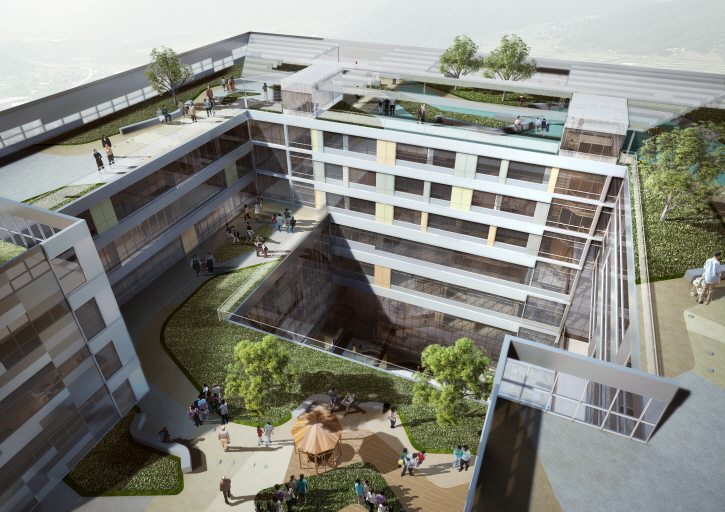 Communication Heart커뮤니케이션 하트는 각기 다른 프로그램과 주변 컨텍스트를 끌어들이는 ‘ㄷ’매스가 조합된 중심으로 이벤트와 녹지로 덮힌 소통의 심장이 되어 글로벌 의료산업 R&D 허브의 기반이 된다.첨단의료복합단지 내 프라이버시를 충족시켜주는 주거공간을 제공하며, 주민들에게 열린공간을 제공하고 건물 내부로 자연,도시,빛을 유입하는 중심커뮤니케이션 공간을 제공하고자 한다.STEP 0 : 커뮤니케이션 하트소통의 중심 : 혁신도시내 첨단의료복합단지의 중심적 역할을 도모하는 정보, 생활, 소통의 심장은 주변 CONTEXT를 끌어들여 각기 다른 프로그램과 소통하는 녹지, 이벤트의 중심이 된다.위치적 중심 : 복합지원시설로써 단지의 중심에 위치한 이점을 가지며 공간적으로 또 다른 강력한 중심을 계획, 단지의 활성화에 기여한다.지형적 중심 : 도시와 자연이 만나는 중점에 위치한 맥락으로서의 중심STEP 1 : 중심만들기 - URBAN, NATURE, LIGHT로 대표되는 CONTEXT들을 열려있는 매스들이 포용하며 부지의 중심으로 끌어들인다.STEP 2 : 중심과 관계맺기 - 소통의 중심공간은 도시, 자연, 빛의 흐름을 끌어들인다. 이것들이 커뮤니티 네트워크를 형성하며 주변과 관계를 맺는다. STEP 3: 중심들여다보기 - 다이나믹한 프로그램과 연계되어 입체보행데크는 유기적인 다양한 소통의 공간을 만든다.