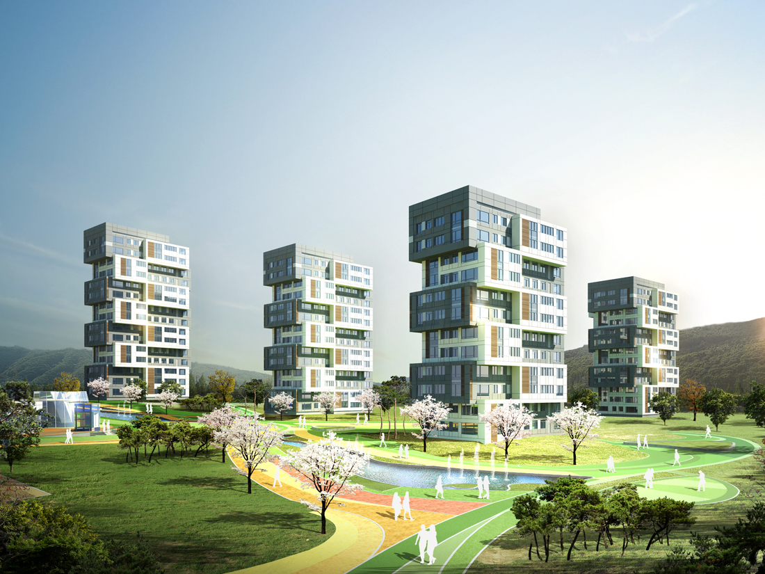 광교지구 관문에 위치한 사색마당이 있는 숲속의 정온마을 만들기용적률100%의 사업부지는 전통적 길과 마을의 요소를 도입한 사색마을로 중저밀 랜드마크단지를 구현하였으며, 광교산과 여천의 자연요소를 유입한 환경친화 및 커뮤니티 네트워크와 연계한 소통하는 힐링 커뮤니티 가로를 담은 마을을 구현하였습니다.