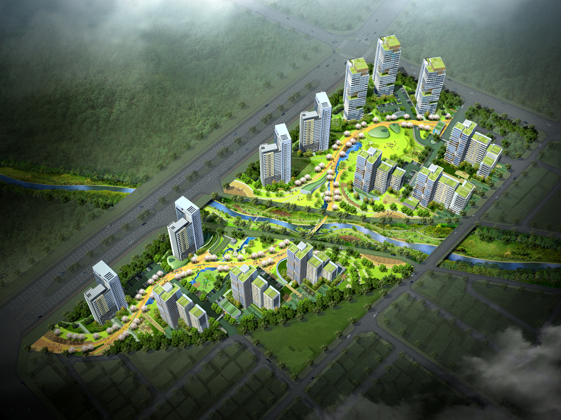 단지계획에서는, 성내천을 중심으로 두 블록이 함께 하는 넓은 외부공간을 조성해 특징 있는 천변 경관을 조성하고, 조닝계획에서도 남측 저층주거지 및 성내천을 고려한 계단형 주동과 북측 대로변에 타워형 주동을 각각 배치해 리드미컬한 도시 경관을 제공했으며, 부대시설 계획에서도, 1,2블럭을 연결하는 보행로와 천변 주위에 시설을 배치해 친환경 커뮤니티 공간을 제공하고, 남측 주택지변에 휴게소 등의 외부공간을 계획해 지역민과의 커뮤니티를 극대화해 천변을 중심으로 한 서울 시민의 쾌적한 주거공간을 현실화 했습니다.