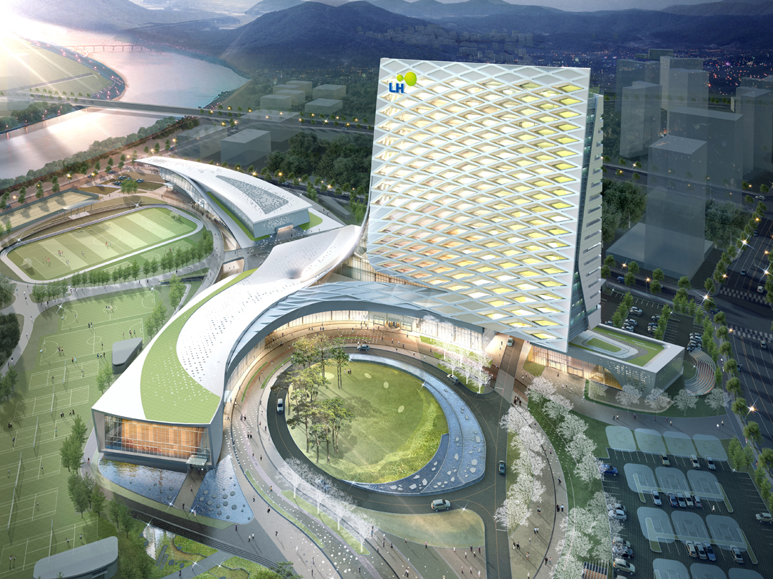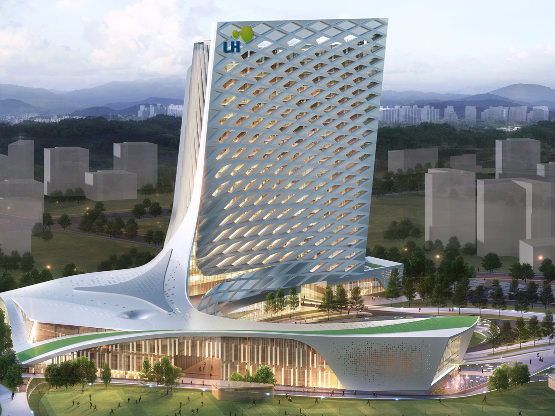 지방 이전 공공기관 신사옥 가운데 최대 규모를 자랑하는 LH본사 신사옥은 ‘천년나무’라는 설계개념 아래 지속가능성, 개방성, 조형성, 실용성 등의 가치를 반영했으며 고품격, 장수명, 에너지절약형 건축물로 국내외 최고의 명품건물 구현은 물론 지역사회와 함께하는 커뮤니티 형성에 중점을 뒀다.