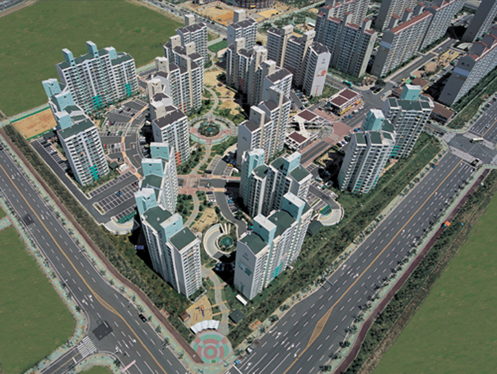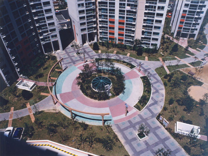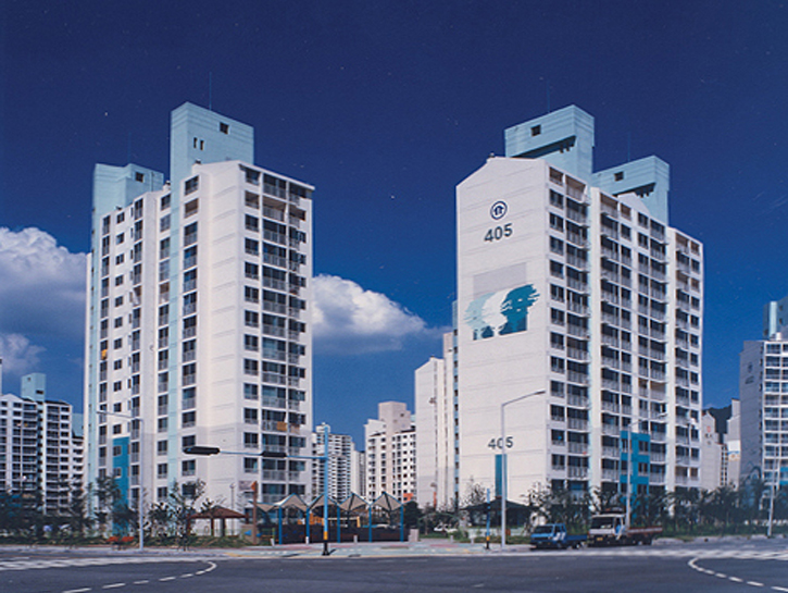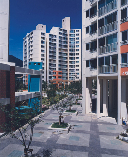 단지 외부와의 연계성과 시각적 개방감을 고려한 판상형과 유선형으로 주동을 배치하여, 고밀도 주거단지에서 오는 압박감과 공간의 폐쇄감을 줄였다. 반복적 요소가 강한 저층부에 격자 구성으로 면을 분절시켜 시각적 위압감을 해소하고 쾌적한 분위기를 조성하도록 계획하였다.