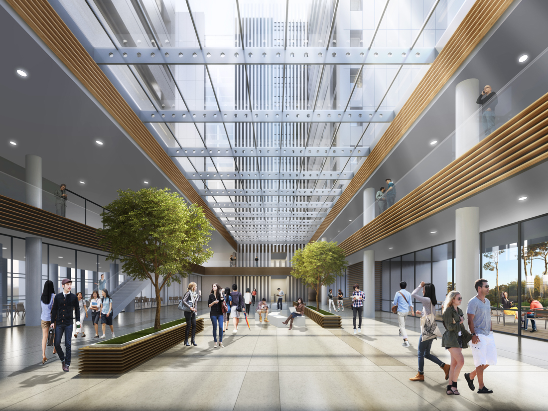 저층부에는 주변과의 연계를 고려한 프로그램조닝으로 자연과 문화가 공존하는 쾌적한 복합문화공간을 마련하여 캠퍼스 내에서 문화를 즐길 수 있는 생활공간과 편의시설을 제공한다. 식당, 도서관, 면회실과 같은 다양한 편의시설이 중심공간인 커뮤니티 플라자와 연계되어 편리하고 쾌적한 공간을 제공한다.