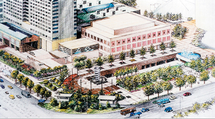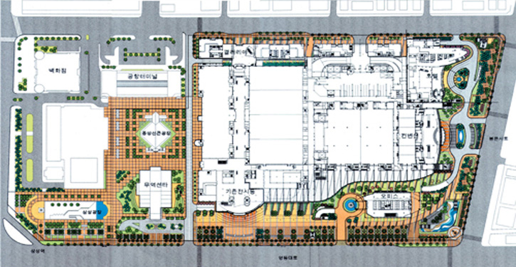 동서의 화합과 조화를 주제로 현대적 건축양식과 조경양식(미니멀리즘)을 추구한 조경 계획이다. 대형 유리벽에 의해 건축 내부와 외부 경관의 상호관입을 도모하였으며, 대지 내의 여러 건물군을 외관의 강한 수림대로 통합하였다. 또한 무역센터의 세계화, 선진화, 첨단화를 표현할 수 있는 현대적 조경 양식 및 첨단소재를 적용하였고, 녹지 피복을 제고하여 다양한 향토수종과 지피류, 초화류를 사용한 자연친화 경관을 조성하고자 했다