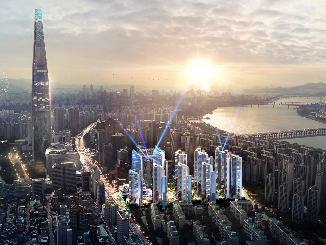 단지 내 스카이브릿지와 연결된 3개의 주동은 단지뿐만 아니라 롯데타워와 더불어 이 지역의 랜드마크로서 역할을 할 것이고, 썬큰광장 및 부대시설과 이어지는 상가시설은 주민과 이웃 중심의 커뮤니티가 가능하며, 차별화되고 다양한 타입의 단위세대는 변화하는 미래의 삶에 대응하여 앞으로 살아갈 주민들에게 삶의 터전을 제공한다.