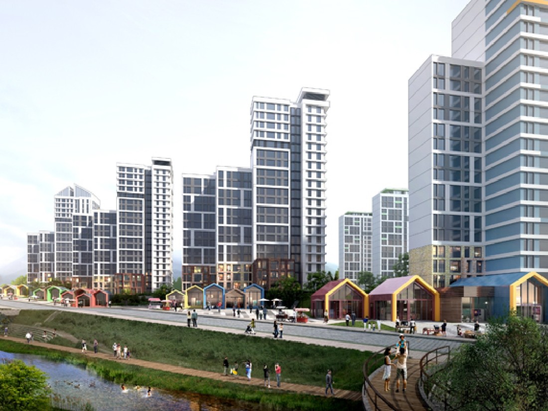 단지 전체를 하나로 만드는 골격을 형성하기 위해 공공가로를 활용하여 단지 중심부에서부터 이어지는 트리형 보행체계를 만들고, 이를 따라 나뭇가지에서 돋아난 다채로운 나뭇잎 형상의 주동을 계획한다. 또한, 나무에 열매가 맺듯, 트리형 보행체계와 연계한 다양한 테마의 커뮤니티시설 및 외부공간을 계획함으로써 ‘한 그루의 나무를 닮은 마을’을 제안한다.