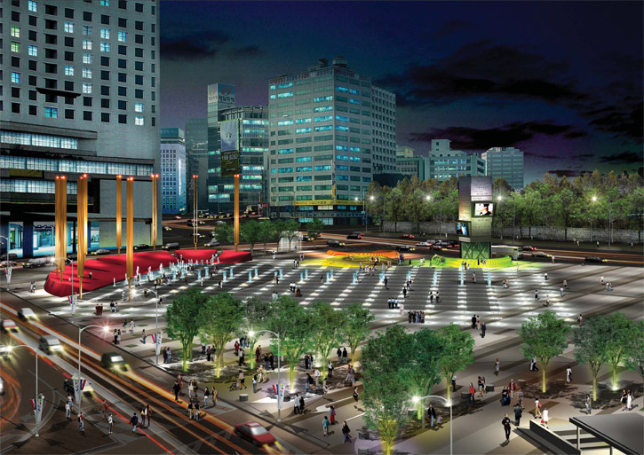 시민들과 단절된채 교통광장으로 방치되었던 공간이 ‘2002’ 한일 월드컵’을 계기로 온 국민의 대표적 응원장소로 활용됨에 따라, 서울을 대표하는 상징적 공간으로서 도시구조 및 맥락의 수용, 서울의 과거, 현재, 미래를 잇는 역사의 흔적을 담아 시민의 눈, 귀, 입이 모이는 수평적 평등의 시민광장으로 계획하였다.