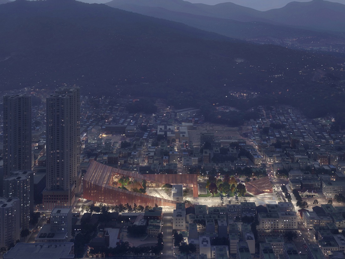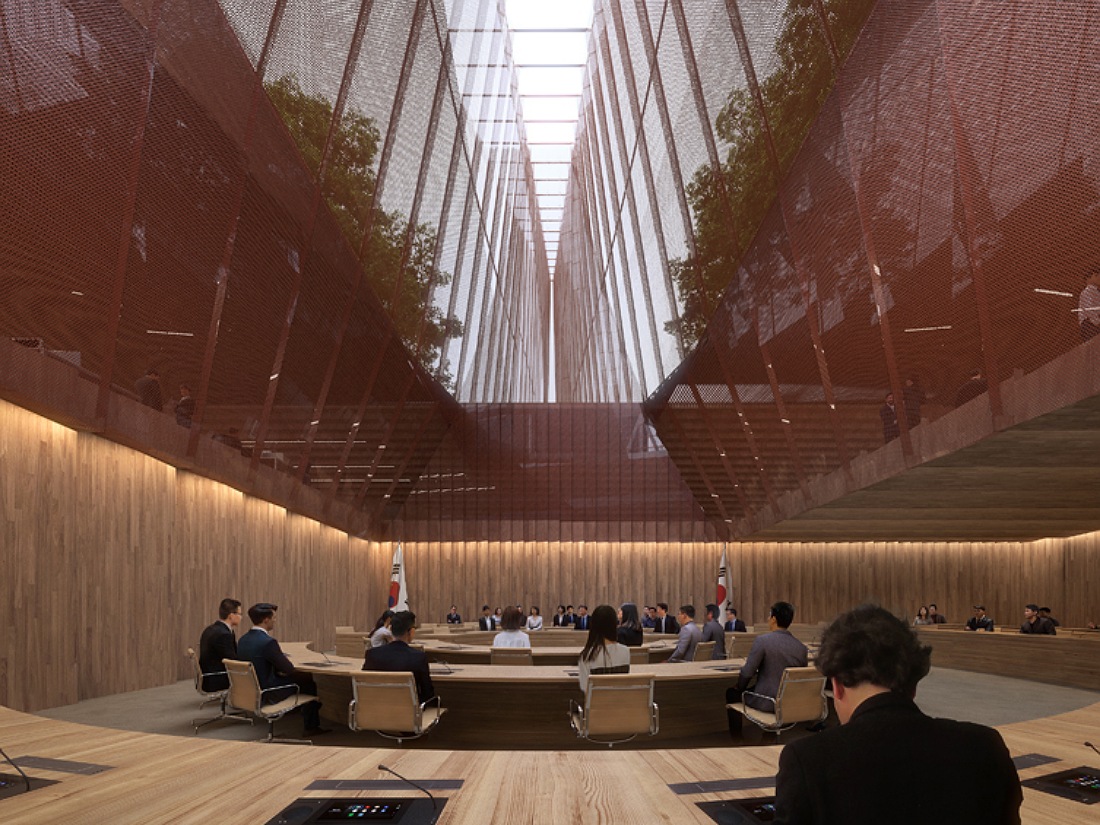 새로운 시청은 사회를 밝은 미래로 인도하는 랜드마크입니다. 시청은 중요한 일들의 배경이 되고 외부 세계에 대한 상징이 됩니다. 시의회장과 시청입구는 전통을 포용하는 형태의 새로운 상징, 봉화가 됩니다. 봉화 상부에서 새로운 시의회장에 퍼지는 자연광은 시의원들의 원활한 회의 진행을 도와줍니다. 여기서 새로운 지평이 발견되고, 선구적인 행정이 이루어지며, 혁신은 시의 번영으로 이어집니다.