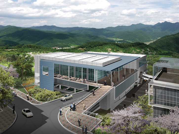 기존 건물과 연계를 최대한 살리기 위해 동선축이 만나는 곳에 시설영역을 설정하고, 지상 경사램프 및 지하 연결통로를 설치하여 본관 방문객 및 직원을 고려해 주차계획을 짰다. 저층 단일 매스의 단조로움을 탈피하기위해 연속된 입면 분절을 도입하였으며, 게이트 형태의 주진입구 디자인과 탑상형 계단실 설치로 정면성 및 상징성을 부여하였다.
