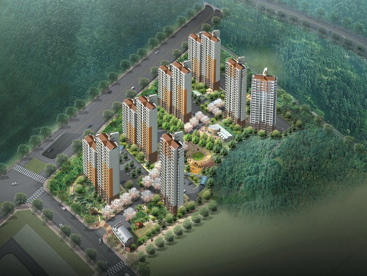 ‘나뭇잎 결’을 모티브로 한 Green Network를 형성하기 위해 경관녹지를 단지내부로 연계시켰다. 경관이 우수한 친환경단지로서 열린 주동배치로 외부 자연환경을 수용하였으며, 자연과 어우러지는 만남의 장을 형성할 수 있는 생활가로와 경관녹지 변에 중앙광장을 두었다. 보행자의 주거동 접근을 원활하도록 보행자 위주의 보행로와 쿨데삭 방식의 차량동선 계획을 하였다.