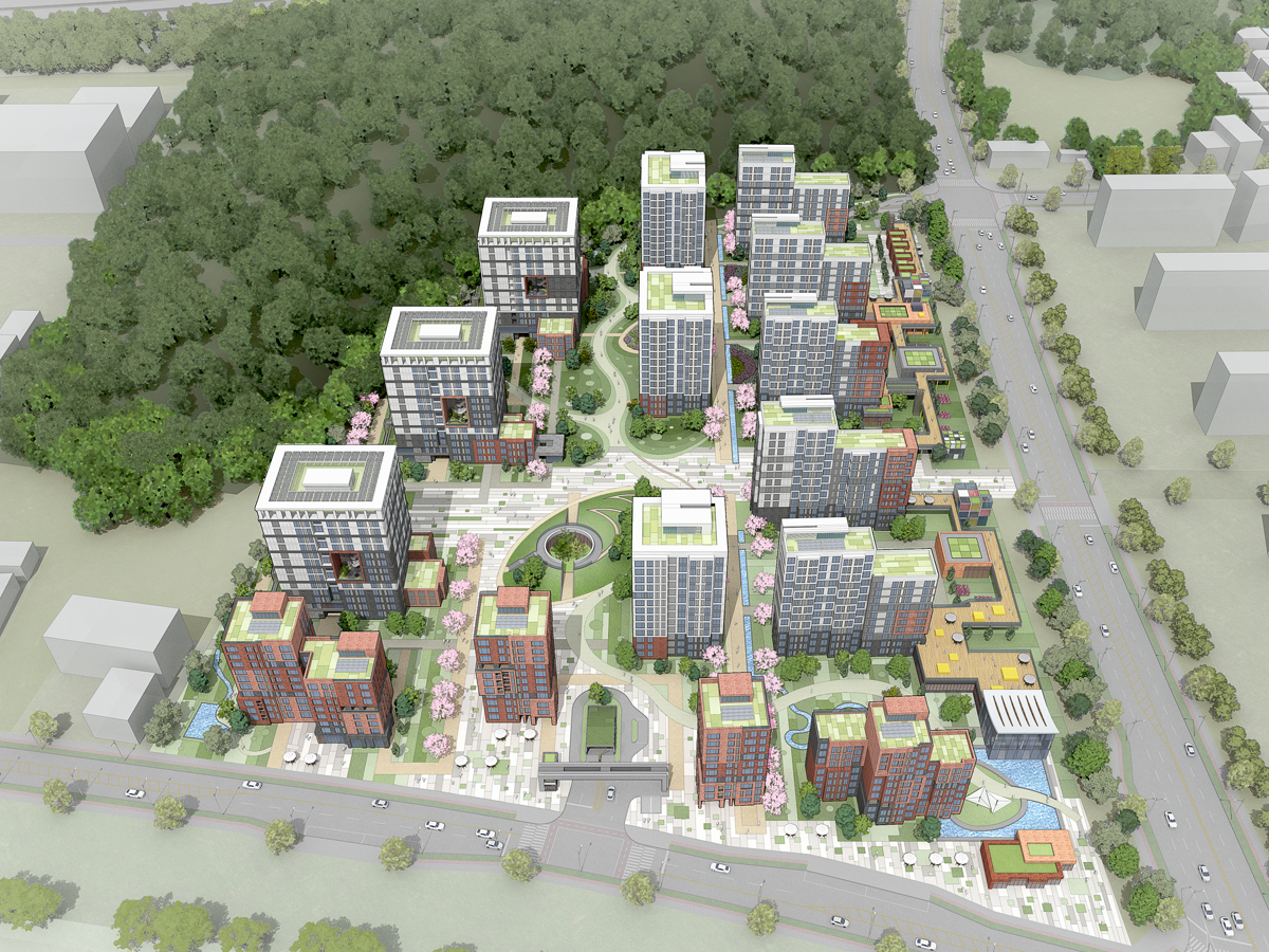 A-5BL은 고령자 복지주택을 포함한 블록으로 공공보행 통로를 통해 인접한 단지의 부대시설과 스쿨 파크까지 연결된다. 모든 세대가 어울릴 수 있는 HUG를 중심으로 자연과 도시가 조화를 이루는 가능성으로서의 계획이 될 것이다.